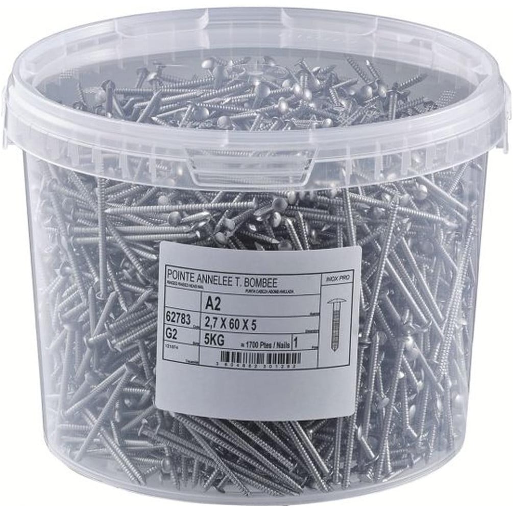 Pointe annelée tête bombée 5 000 pcs 2,3x40 mm - Inox A2 - Résistante et durable - ACTON