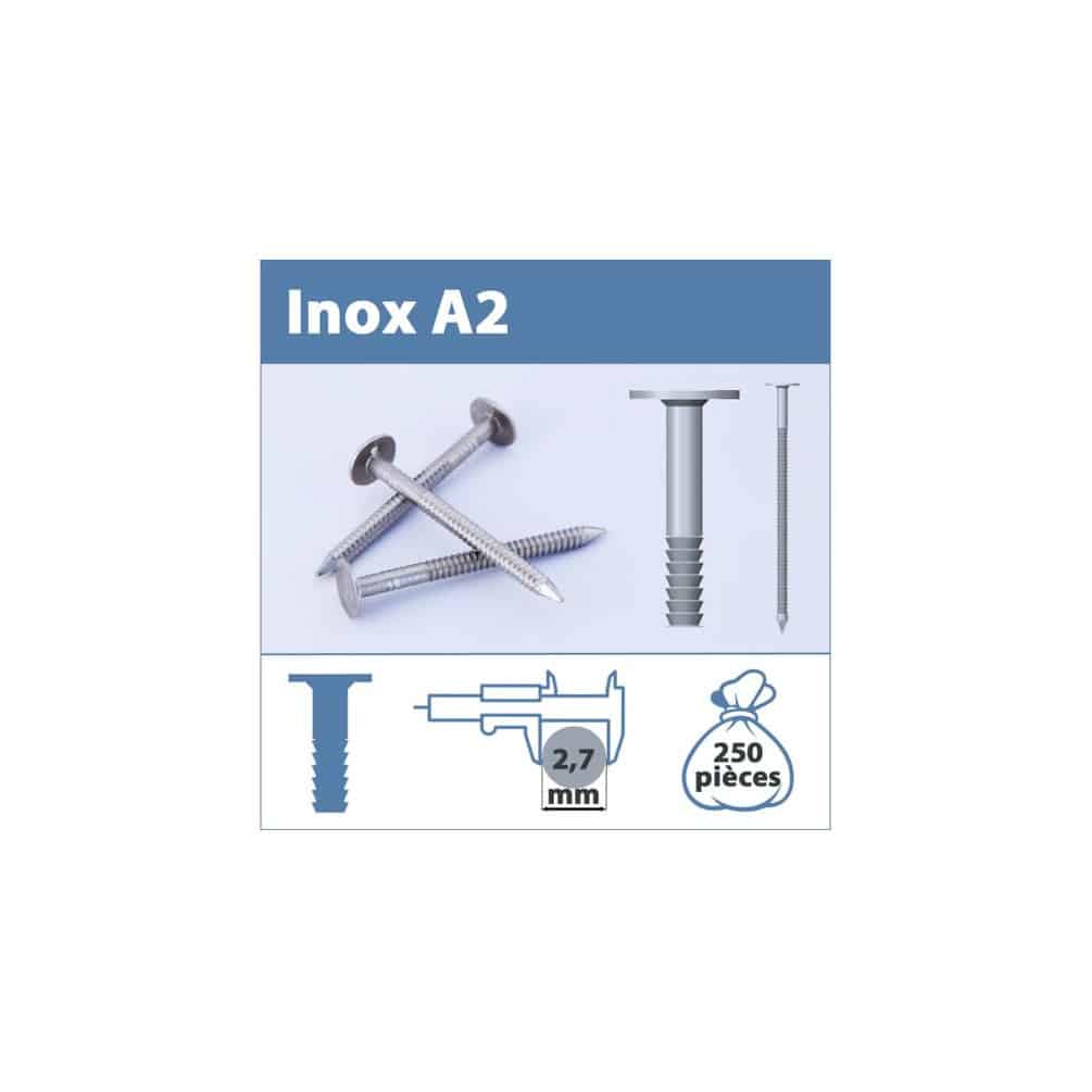 Pointe annelée tête bombée 250 g - Inox A2 2,3x30 mm - Résistante et durable - ACTON