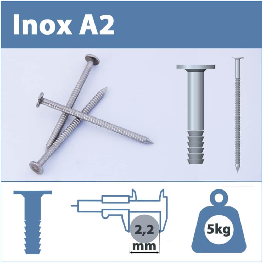 Pointe annelée tête bombée 2,3x40 mm - Inox A2 - Résistante et durable - ACTON