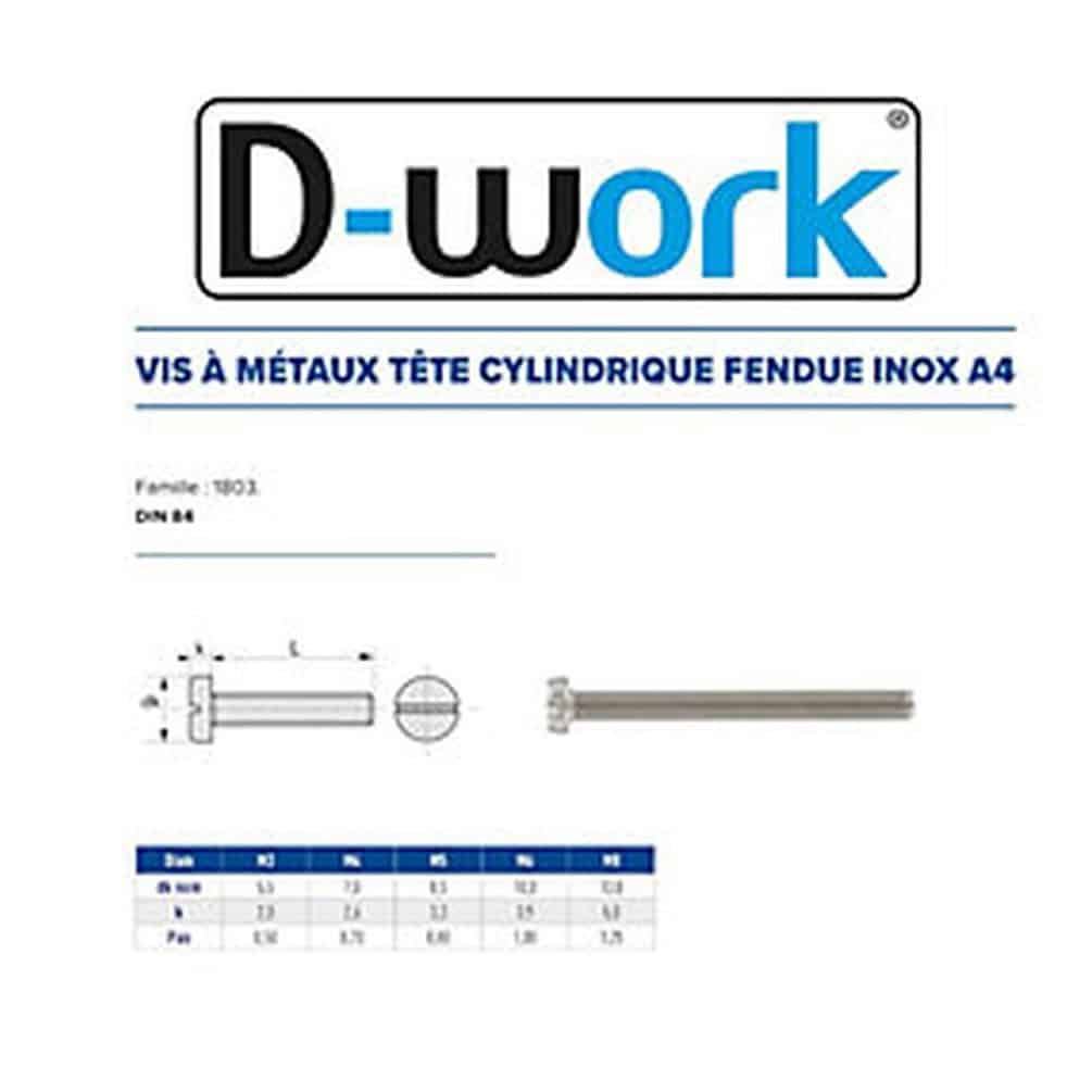 50 Vis MTX Tête Cylindrique Fraisée 10x60 mm - Inox A4, Norme DIN 84 - Résistantes et Anticorrosion - D-Work