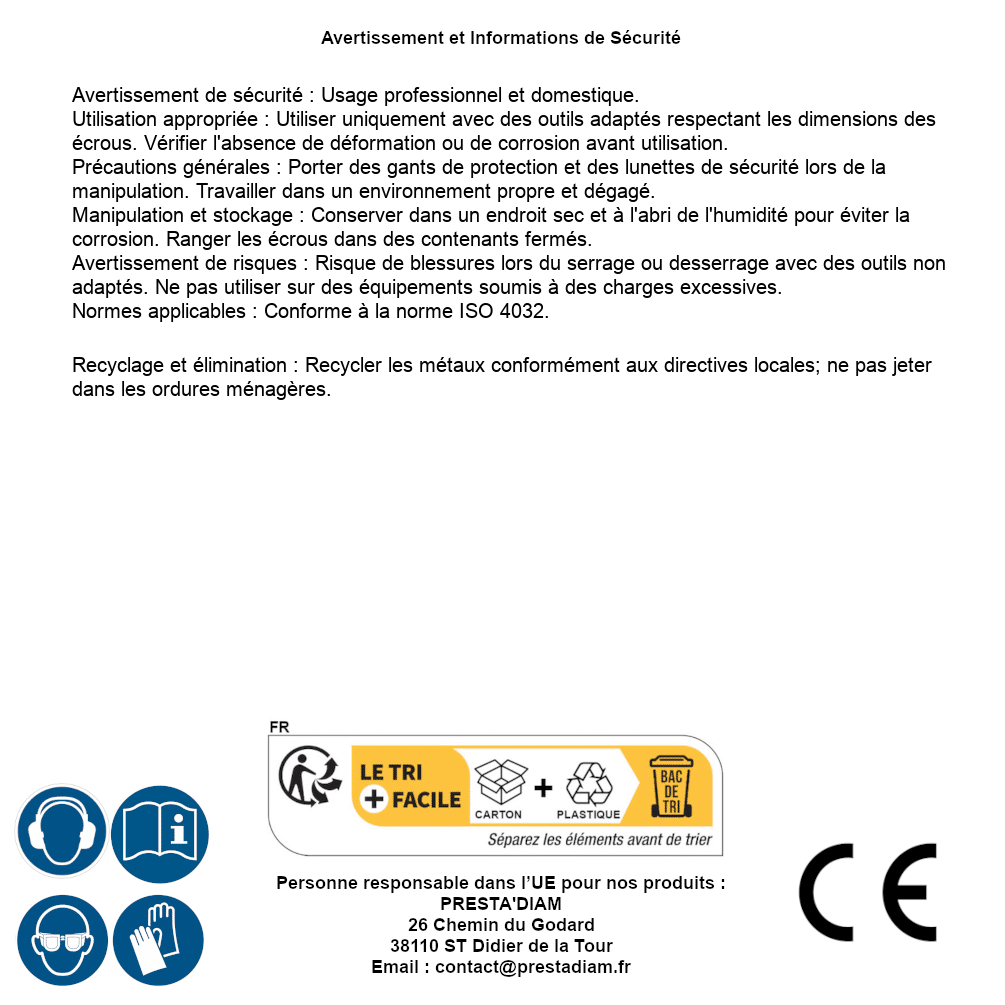 | Persona responsable UE | PRESTA'DIAM 26 Chemin du Godard 38110 ST Didier de la Tour Correo electrónico : contact@prestadiam.fr |