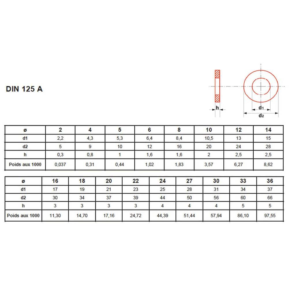 100 Rondelles Plates Étroites Z22 – Acier Brut, Norme NFE 25513 – Fixation Sécurisée - LENNIE
