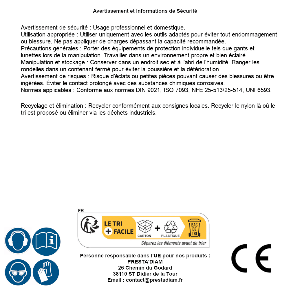 | Persona responsable UE | PRESTA'DIAM 26 Chemin du Godard 38110 ST Didier de la Tour Correo electrónico : contact@prestadiam.fr |