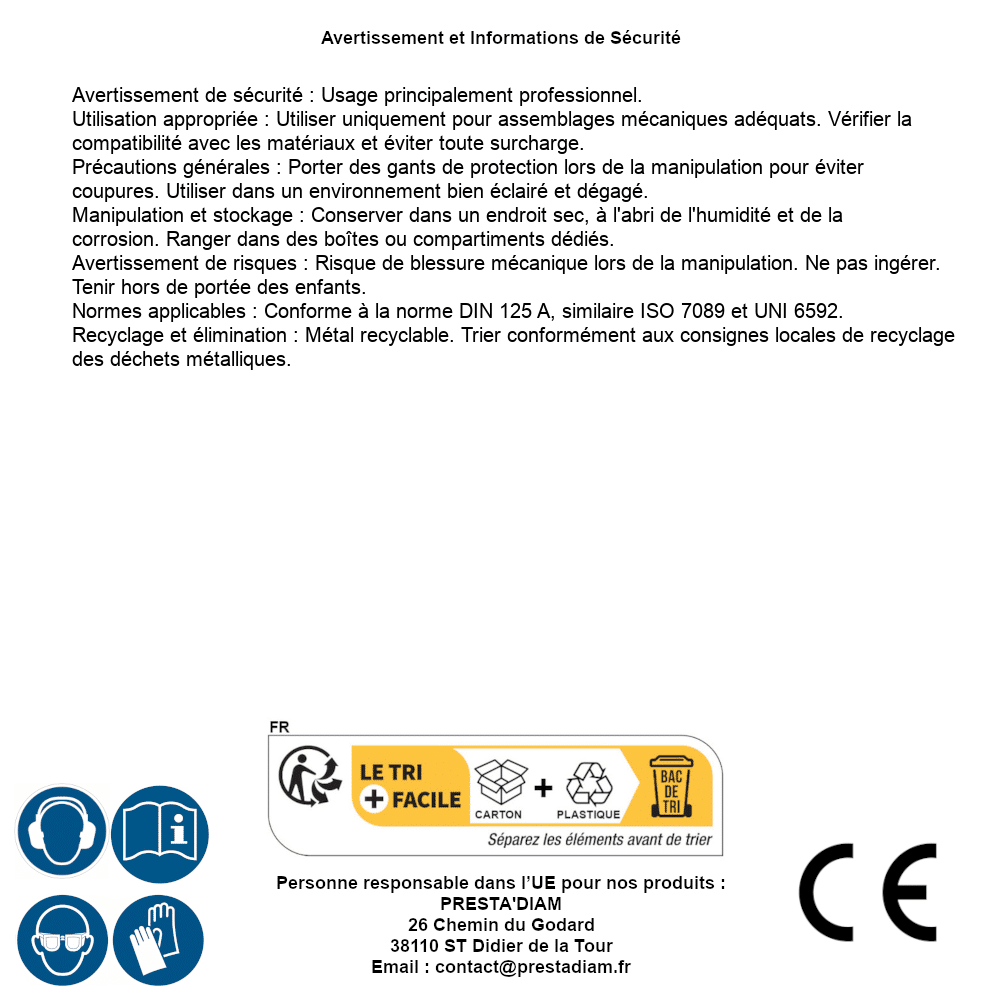 200 Rondelles Plates Étroites Z12 – Acier Brut, Norme NFE 25513 – Fixation Sécurisée - LENNIE