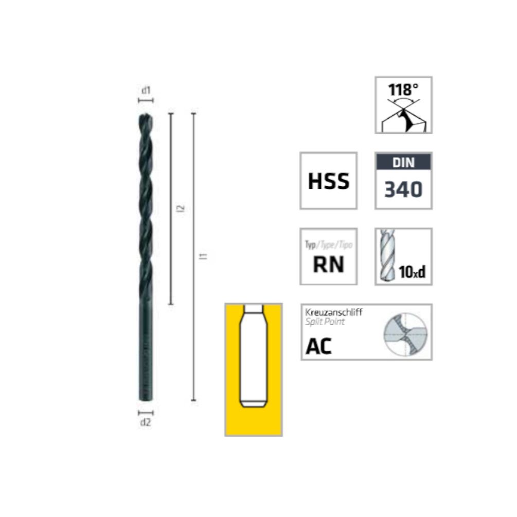 Foret Hélicoïdal Long 5,3 mm - HSS DIN 340 RN 132 mm - Lot 10 - ALPEN-MAYKESTAG