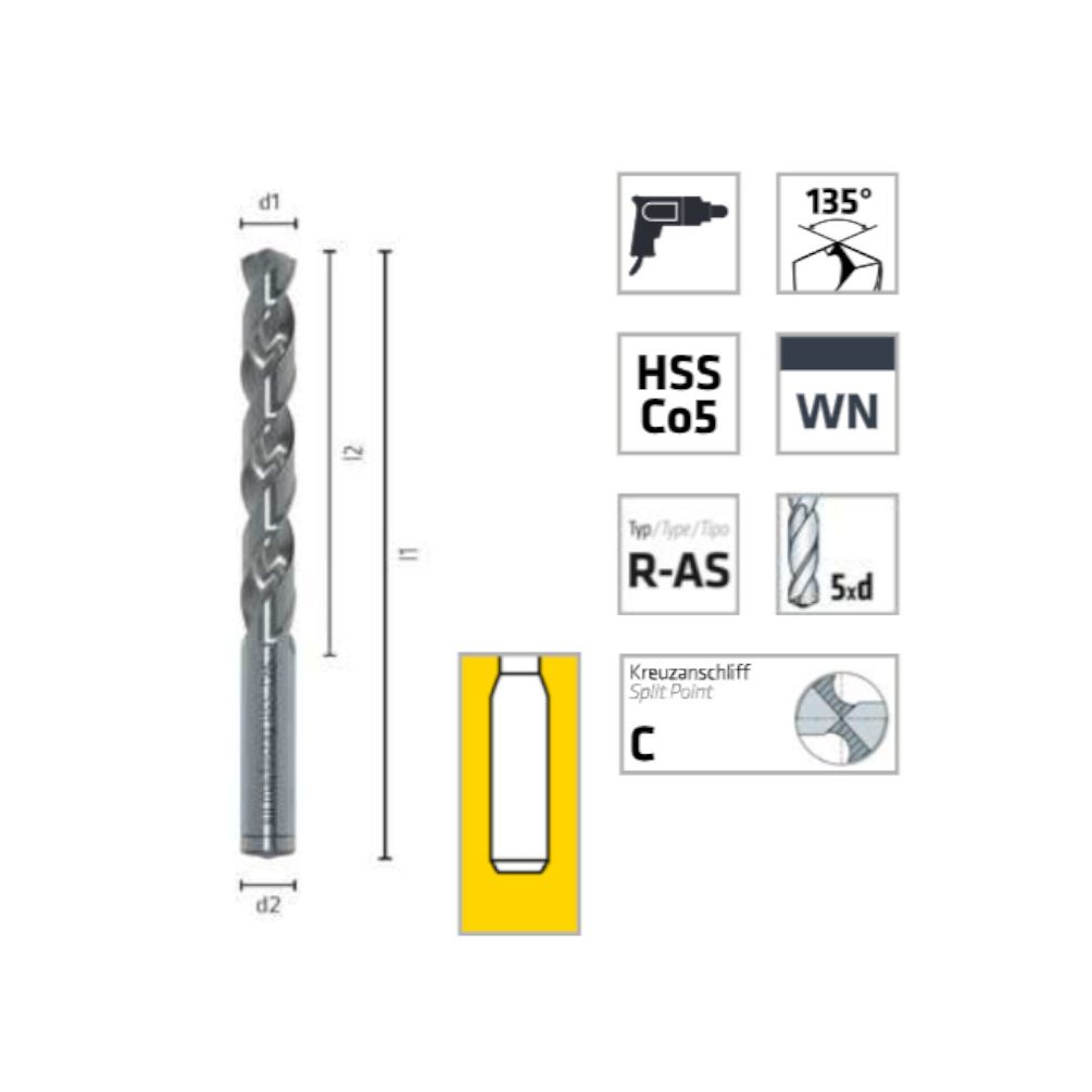 Foret Pour Points De Soudage HSS Cobalt Ø6 Mm - Longueur Totale 80 Mm, Longueur De Perçage 39 Mm - Haute Préci - ALPEN-MAYKESTAG