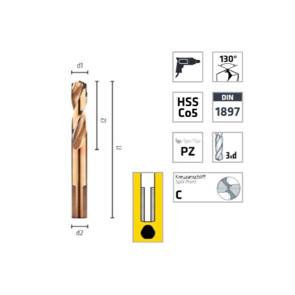 Foret Pour Points De Soudage HSS Cobalt Ø6 Mm - Longueur Totale 80 Mm, Longueur De Perçage 39 Mm - Haute Préci - ALPEN-MAYKESTAG