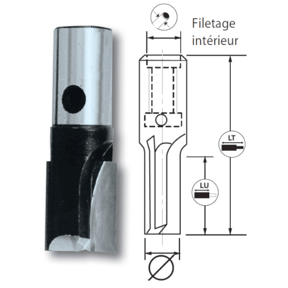 Mèche à Rainer Droite Carbure D.18 mm X Q. M10 x 1.5 x Lu. 25 mm x Lt. 60 mm Z2+1 - Idéale pour Défonçage Menuserie - Diamwood