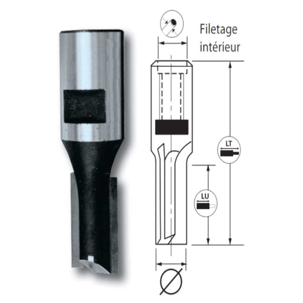 Ref. LEM-414.725.00En savoir + sur Mèche à Rainer Droite Carbure D.25 mm x Q. M12 x 1 x Lu. 25 mm x Lt. 60 mm Z2+1 - Idéale pour Défonçage Menuserie - Diamwood