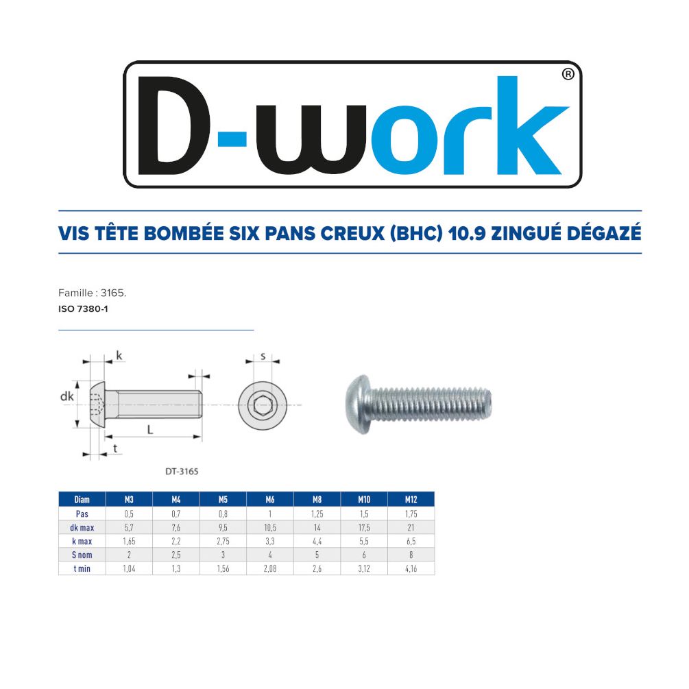 Ref. LEN-3165-3-20En savoir + sur 200 Vis Métaux Tête Bombée 6 Pans Creux F/Total BHC 3 x 20 mm - 7380-1 - 10.9 - Zingué blanc - D-Work
