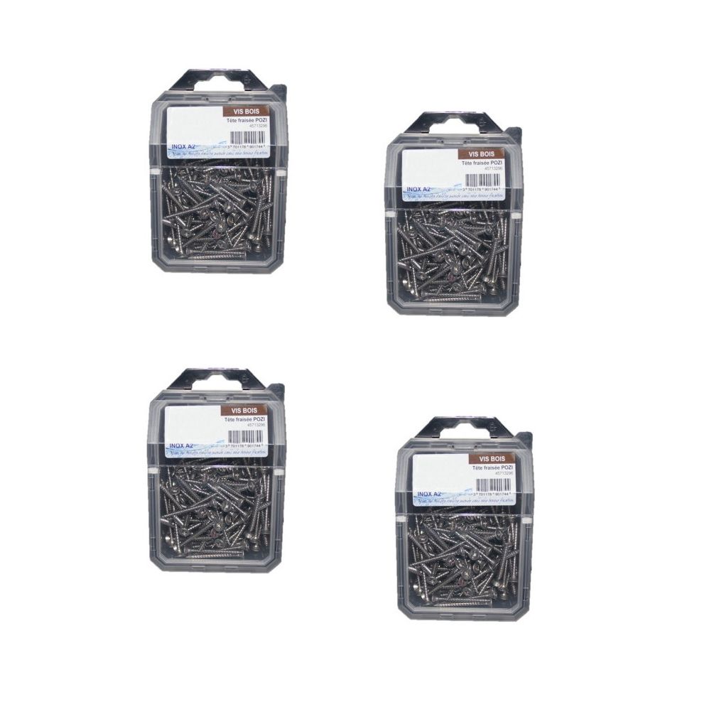 4 Coques de 100 Vis Bois Tête Fraisée Pozidriv 4 x 30 mm - Inox A2 - D-Work