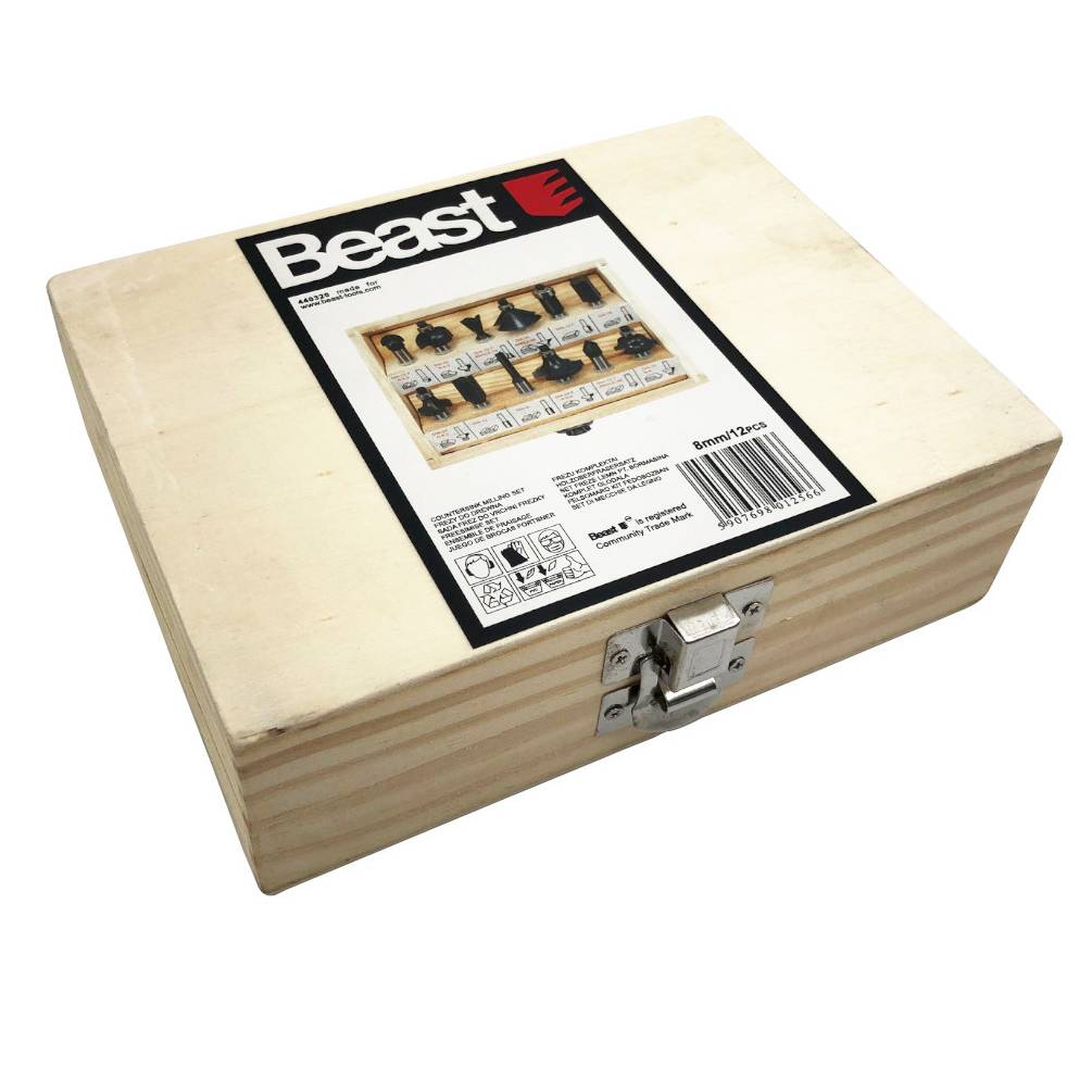 Coffret Bois de 12 Mèches de Défonceuse Carbure x Q. 8 mm - Usage intensif - Efficace et robuste - Beast