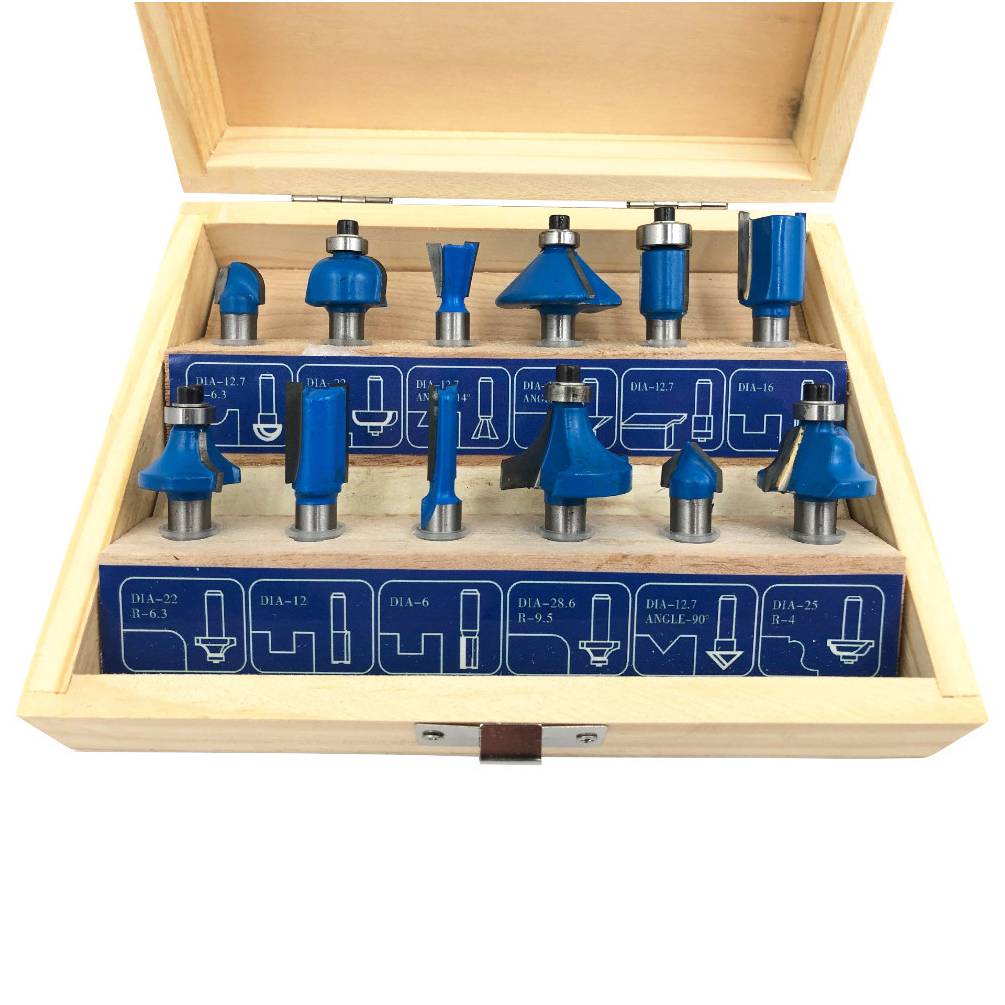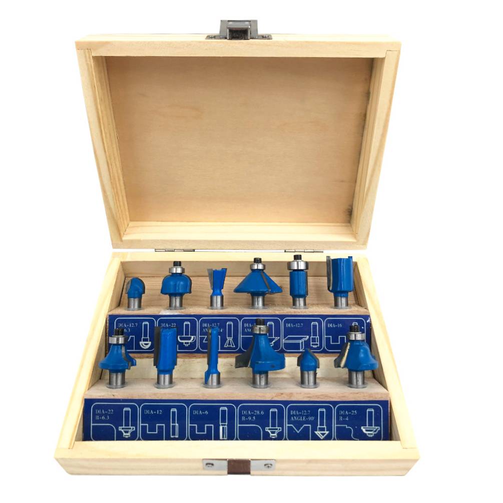 Coffret assortiment de mèches de défonceuse pour le travail du bois massif composé de 12 mèches carbure de haute qualité : 3 fraises droites à rainurer D. 6, 12, 16 mm, 1 fraise à affleurer D. 12,7 mm (avec roulement), 1 fraise à gorge rayon 6,3 mm, 1 fraise à congé rayon 6,3 mm, 1 fraise à chanfrein à 45°, 1 fraise à queue d'aronde D. 12,7 mm, 2 fraises à 1/4 de rond rayon 6,3 et 9,5 mm, 1 fraise à doucine rayon 4 mm, 1 fraise à rainurer en V D. 12,7 mm. Queue/emmanchement : 8 mm. Nombre de coupe de la plupart des fraises : 2. Produit conforme aux normes EN 847-1 et EN 847-2. Livré en coffret bois avec 1 clé de service. Nos coloris, emballages produits peuvent variés en fonction de nos arrivages.