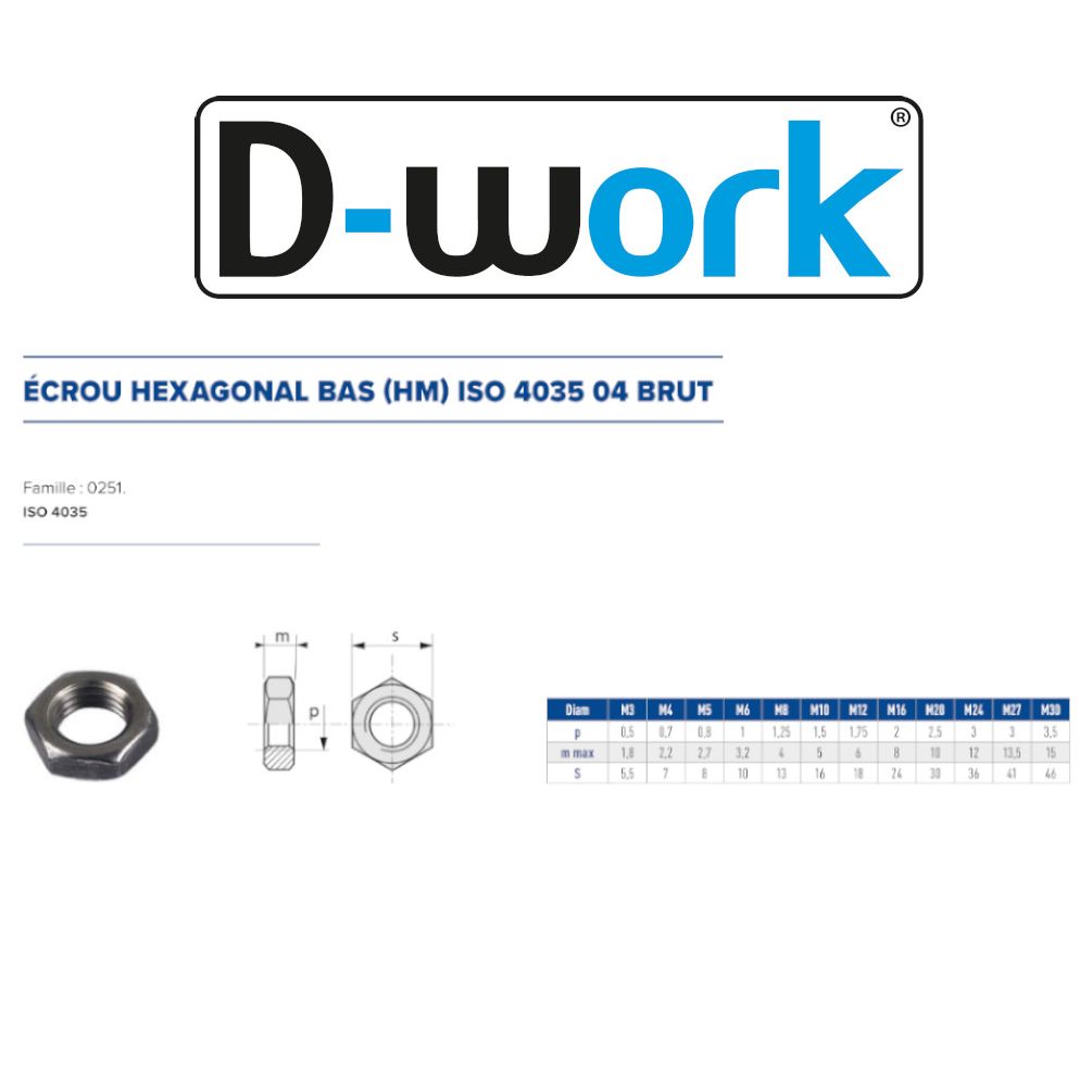 1000 Ecrous Hexagonaux Bas M3 mm - 4035 - 4 - Brut - D-Work