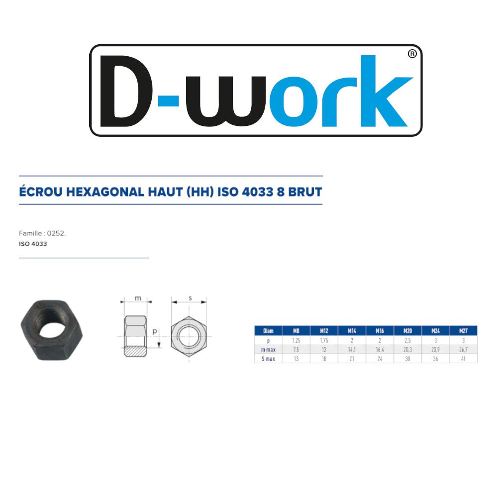 10 Ecrous Hexagonaux HU M27 mm - 4032 - 8 - Brut - D-Work