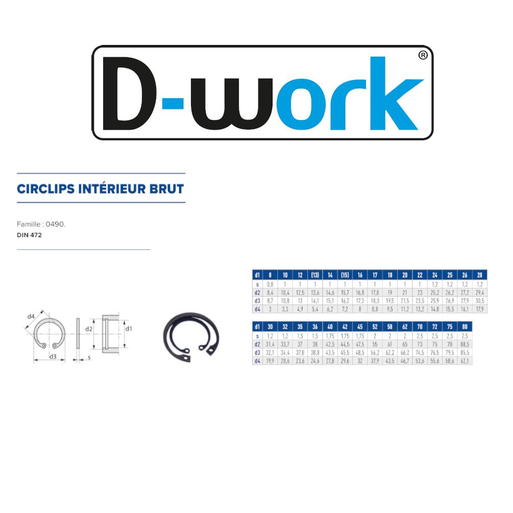 200 Circlips Intérieurs D. 17 mm - DIN 472 - Brut - D-Work