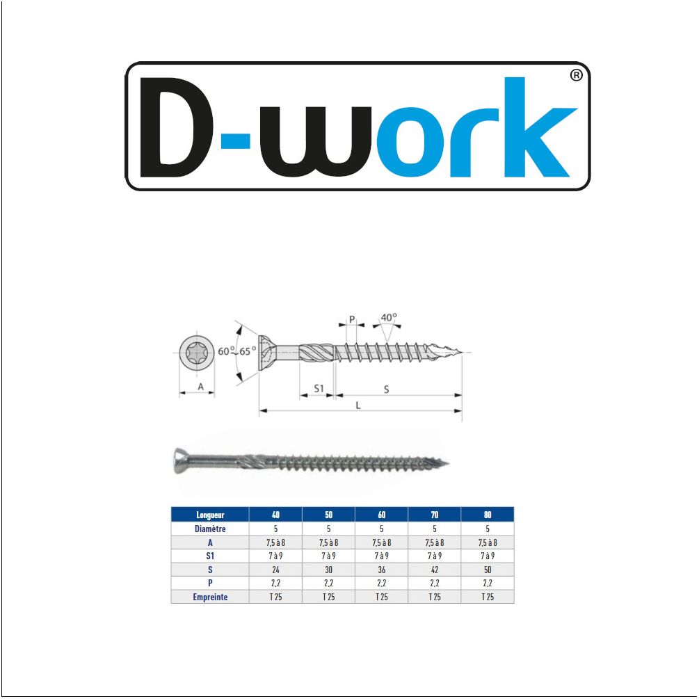 Pour une utilisation optimale, pré-percez les trous si nécessaire et utilisez un tournevis adapté à la norme TX25 pour un vissage facile et efficace.