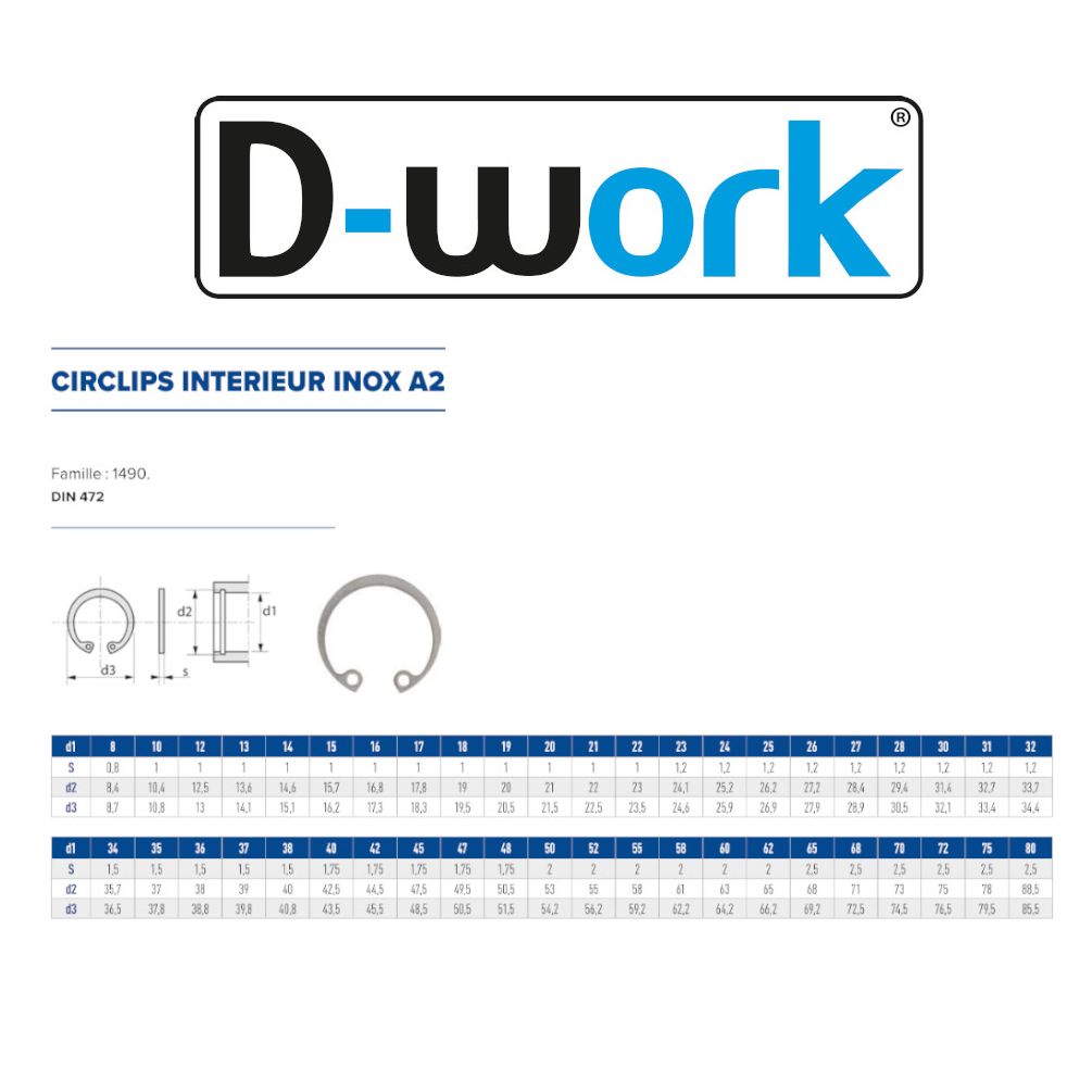 200 Circlips Intérieurs D. 17 mm - DIN 472 - Brut - D-Work