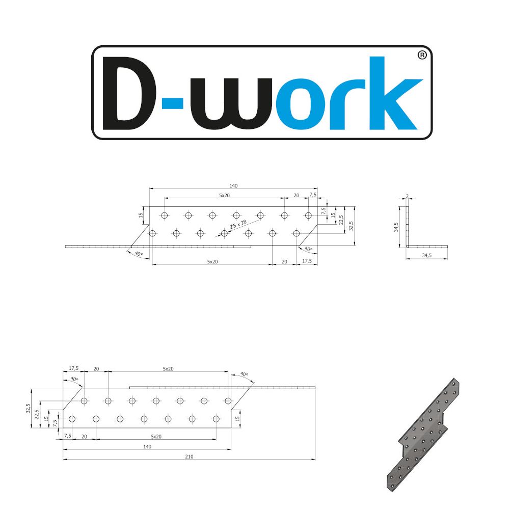 Ref. LEN-2570-32-210GEn savoir + sur 44 Equerres Chevron Gauche 32 x 210 x 2 mm - Zingué blanc - D-Work