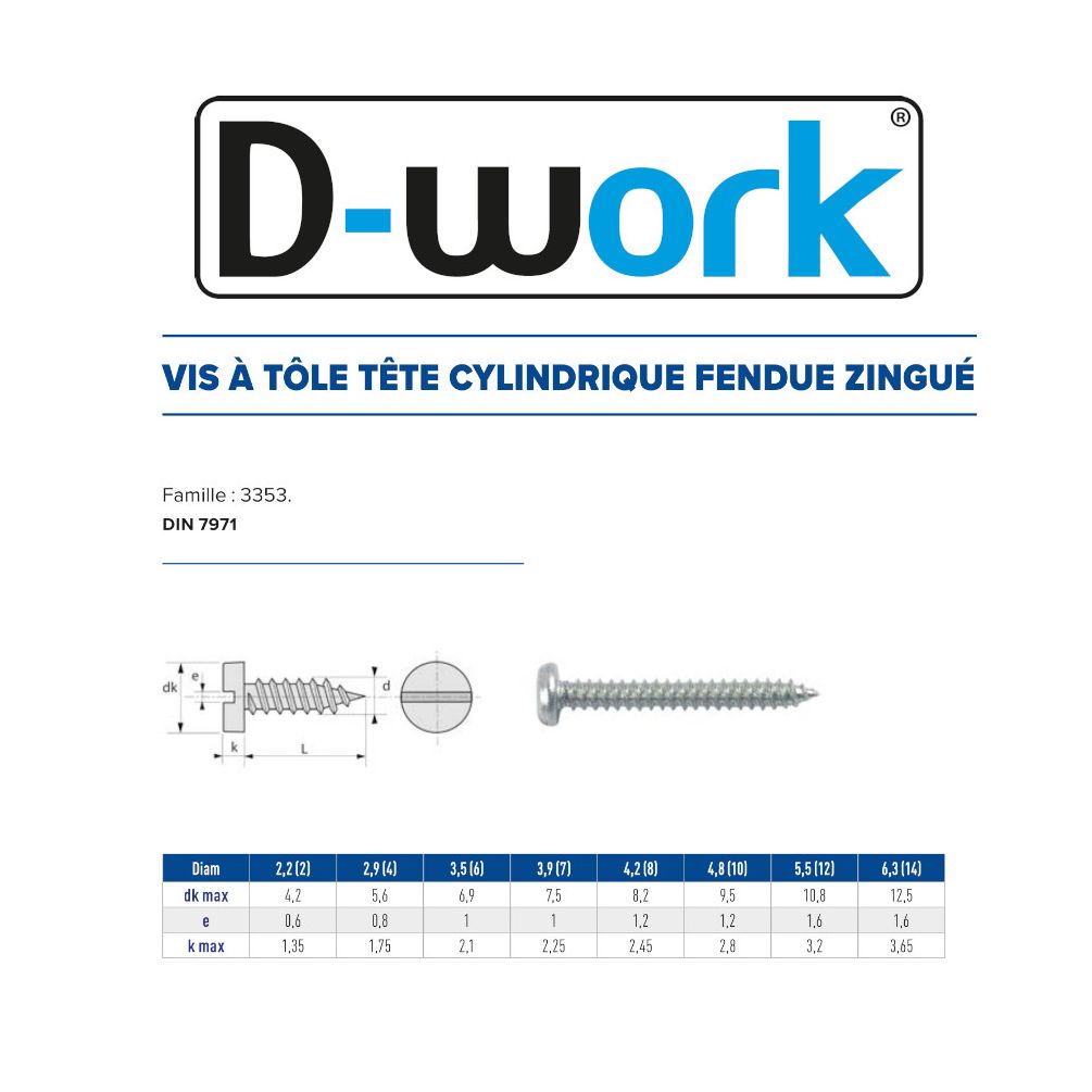 Ref. LEN-3353-6-31.7En savoir + sur 500 Vis à Tôle Tête Cylindrique Fendue 3.5 x 31.7 mm - DIN 7971 - Zingué blanc - D-Work