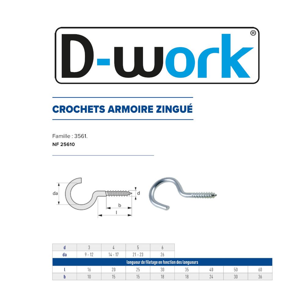 200 Crochets Armoire 4 x 25 mm - NF 25610 - Zingué blanc - D-Work
