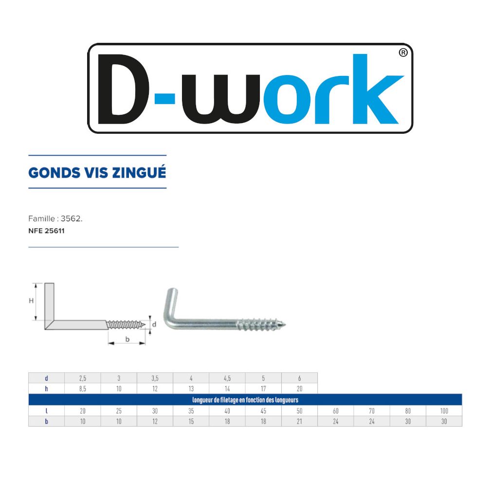 200 Gonds à Vis 4 x 30 mm - NFE 25611 - Zingué blanc - D-Work