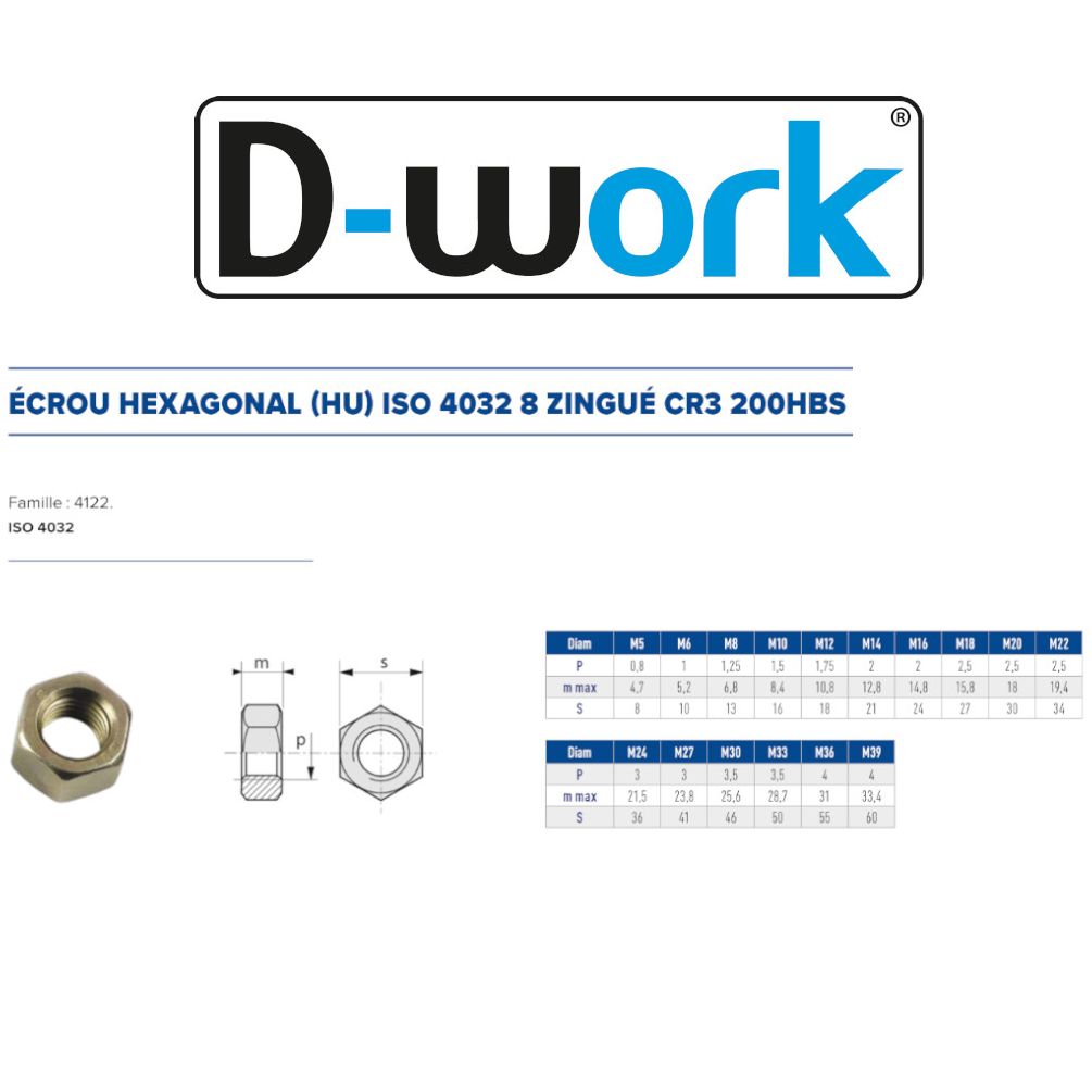 - Norme : ISO 4032.8
