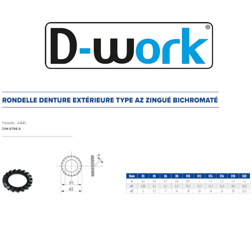1000 Rondelles Denture Extérieure M6 mm - DIN 6798 A - Brut - D-Work