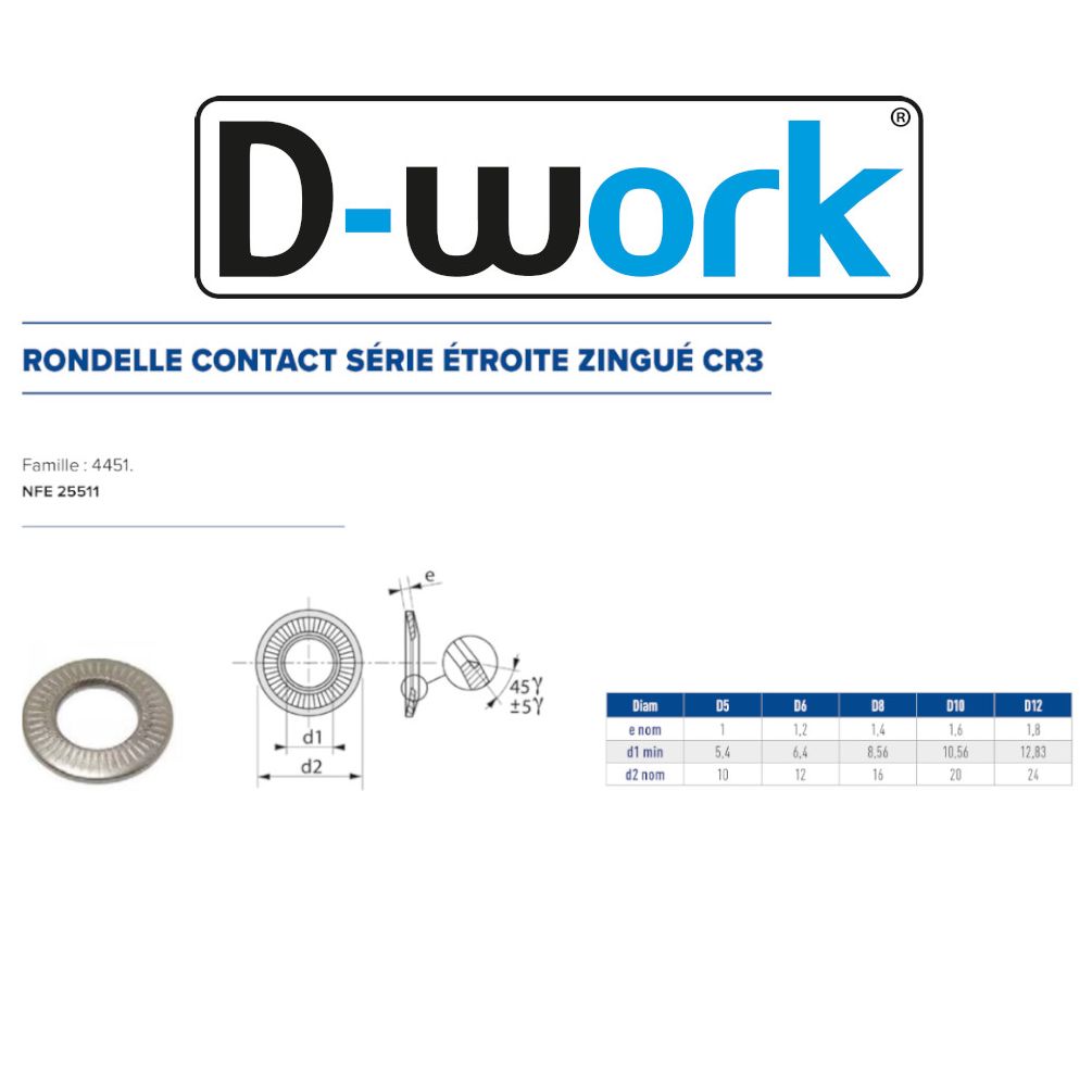 Ref. LEN-4451-6En savoir + sur 2000 Rondelles Contact Etroites M6 mm - NFE 25511 - Zingué CR3 - D-Work