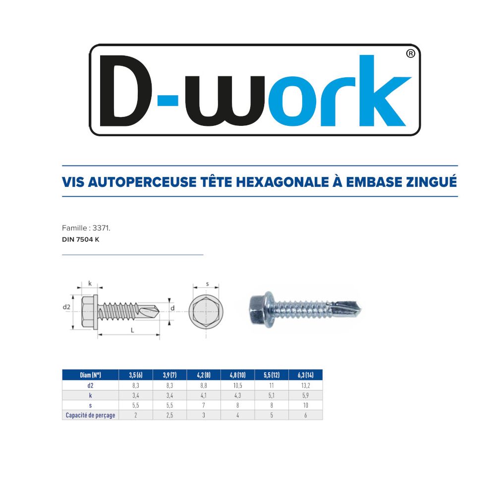 4 Coques de 100 Vis Autoperceuses Tête Hexagonale 4.2 x 19 mm - DIN 7504 K - Zingué blanc - D-Work