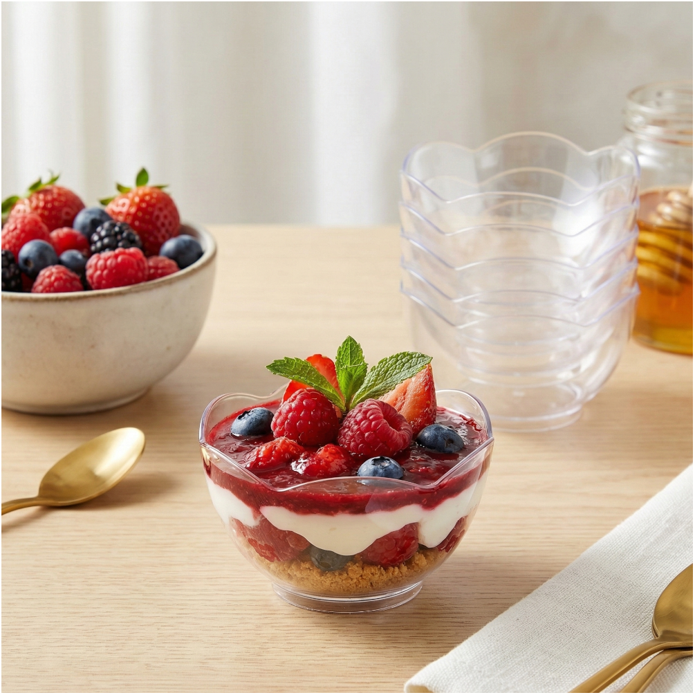 Grâce à leur résistance à une chaleur allant jusqu'à 70°C, ces verrines peuvent être facilement nettoyées au lave-vaisselle, offrant ainsi un entretien simple et efficace pour une utilisation sans contrainte.