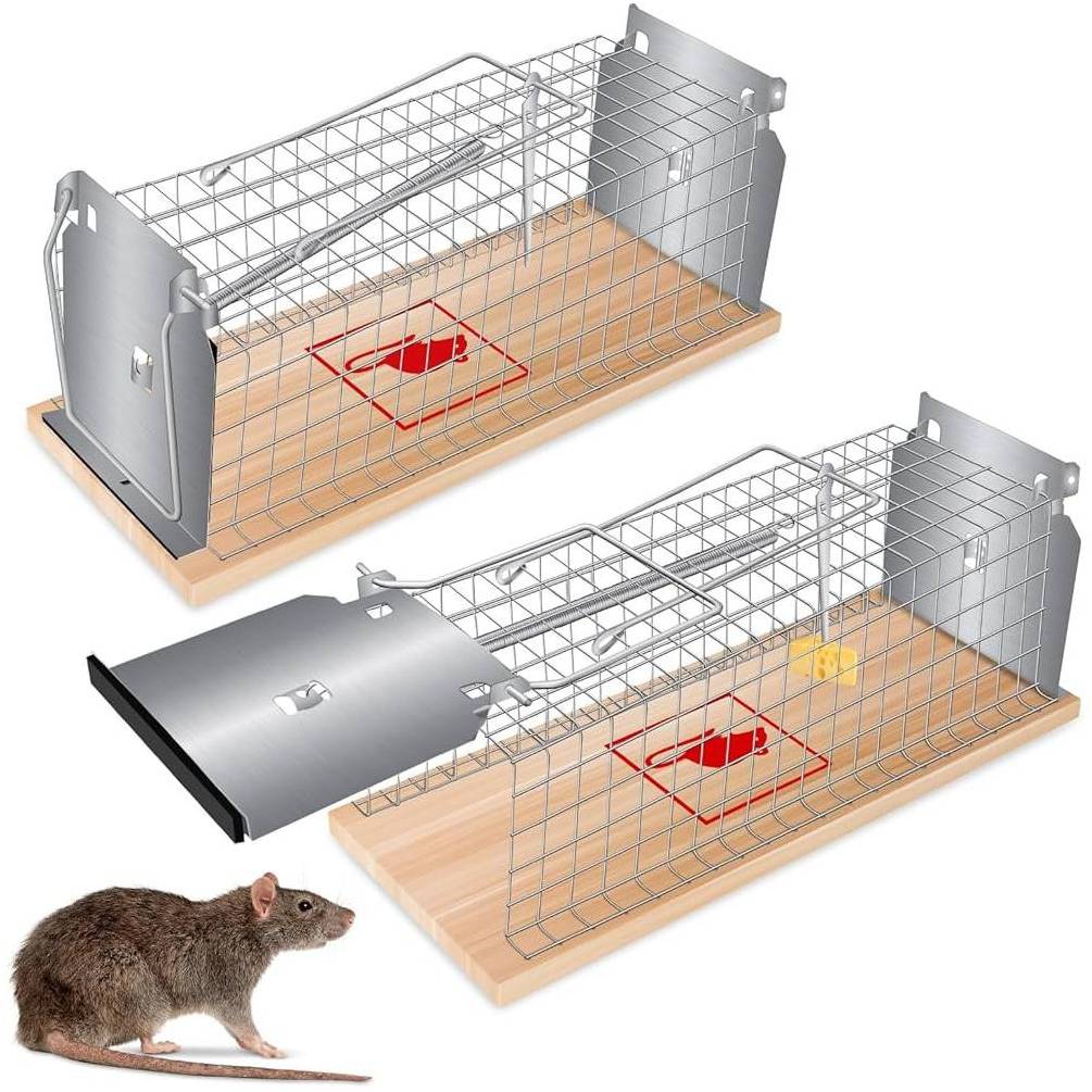 2 Pièges à Souris, Rats, Mulots, Nasses à Rats, Rongeurs, Cage de Capture 27 x 14 x 11,5 cm en Acier Galvanisé (2 pcs) - Animood