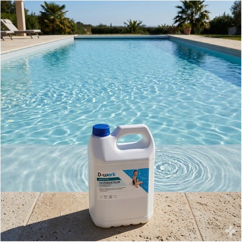 Produit d'Hivernage Piscine 5 l - Algicide et Bactéricide Non Moussant - Protection et Entretien Efficace - D-Work