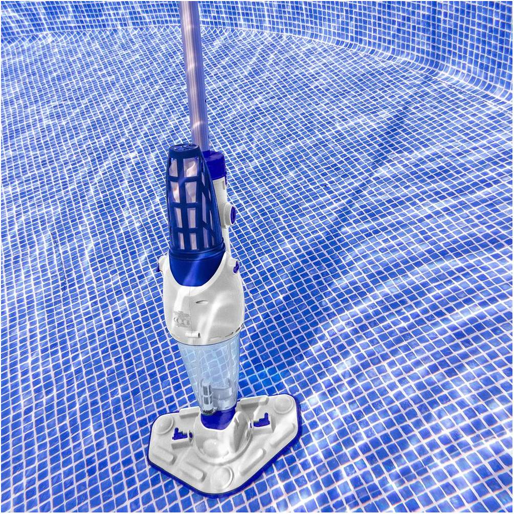 - Nettoyage : Immergez l’aspirateur et déplacez-le lentement sur le fond du bassin. Sa conception ergonomique permet d’aspirer les saletés sans soulever de nuages de poussière.