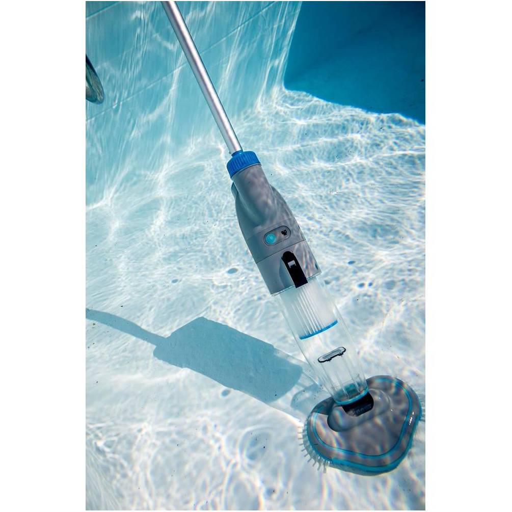 - Nettoyage : Immergez l’aspirateur et déplacez-le lentement sur le fond du bassin. Sa conception ergonomique permet d’aspirer les saletés sans soulever de nuages de poussière.