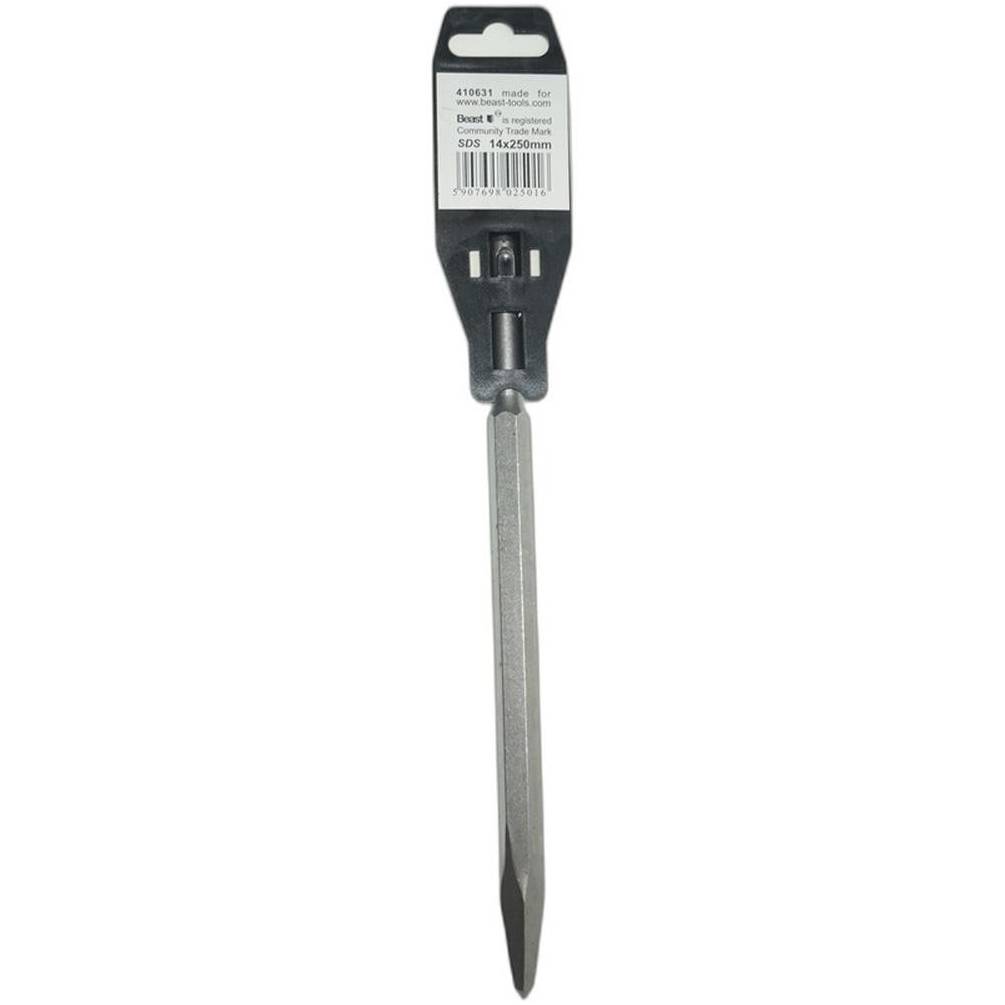 Le ciseau pour béton SDS Plus 14x250 mm de la marque Beast est un outil professionnel conçu pour les travaux de démolition et de burinage sur béton, pierre et matériaux durs. Sa conception en acier trempé garantit une excellente résistance à l'usure et une durabilité accrue, permettant une utilisation intensive sur chantier.