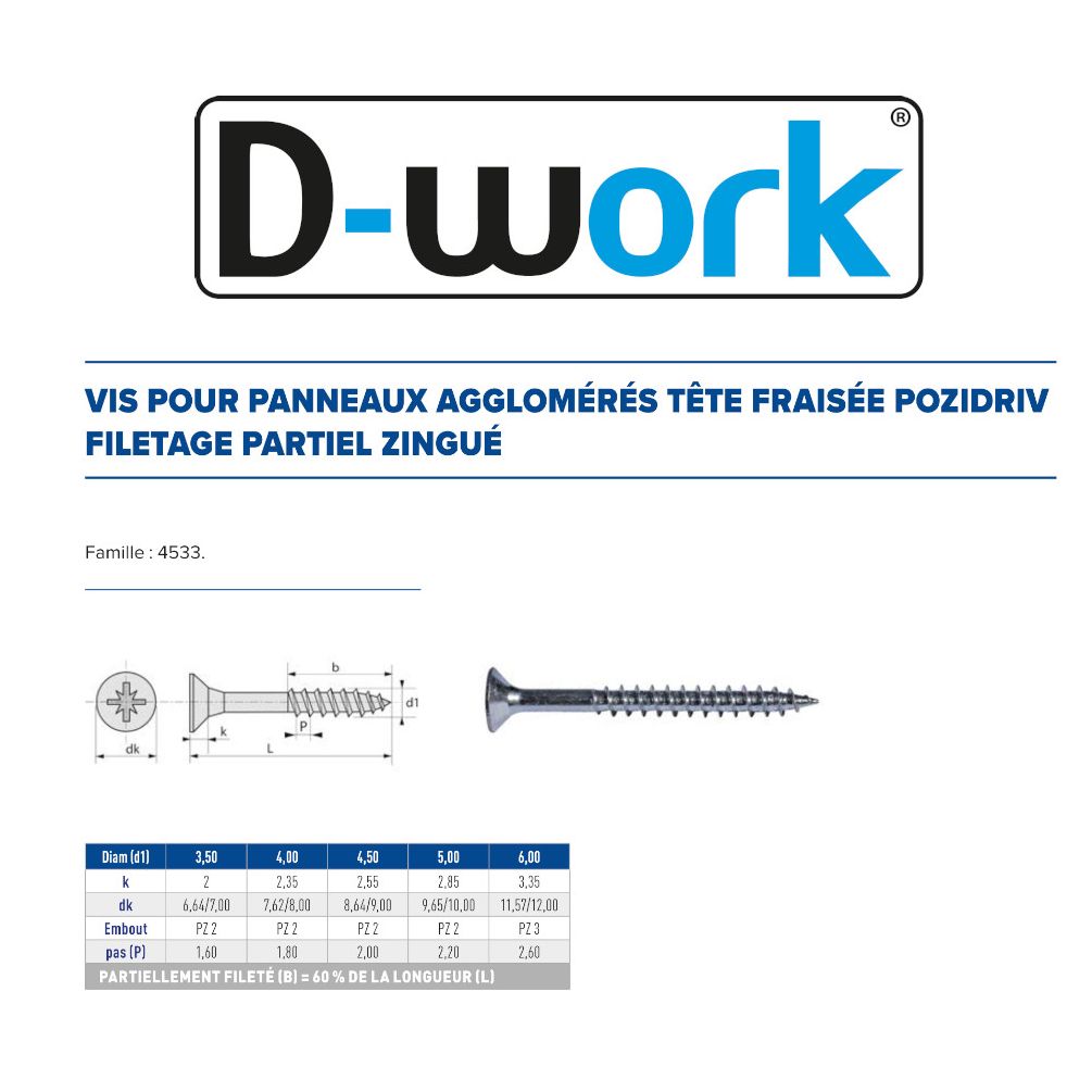 Ref. LEN-4533-3.5-45En savoir + sur 500 Vis Bois Tête Fraisée Pozidriv F/Partiel 3.5 x 45 mm - Zingué blanc - D-Work