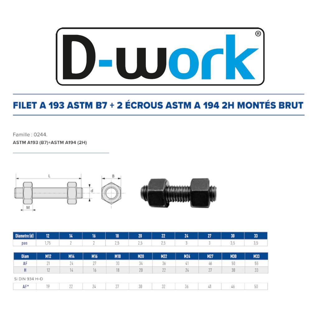 Ref. LEN-0244-30-170En savoir + sur 10 Filets et 2 Ecrous Montés D. 30 x 170 mm - ASTM A193 et ASTM A194 - Brut - D-Work