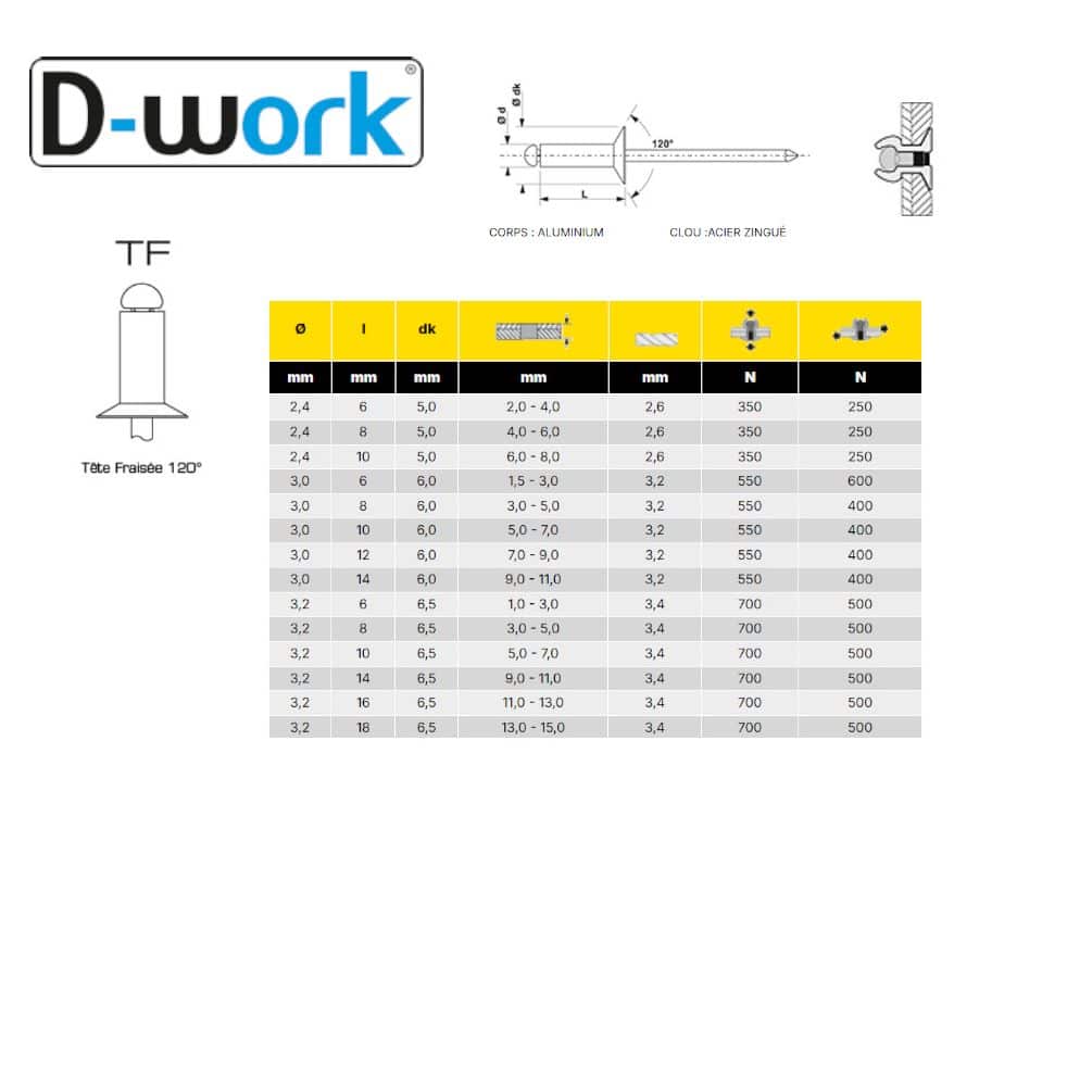 - Type : Rivet aveugle TF 120D