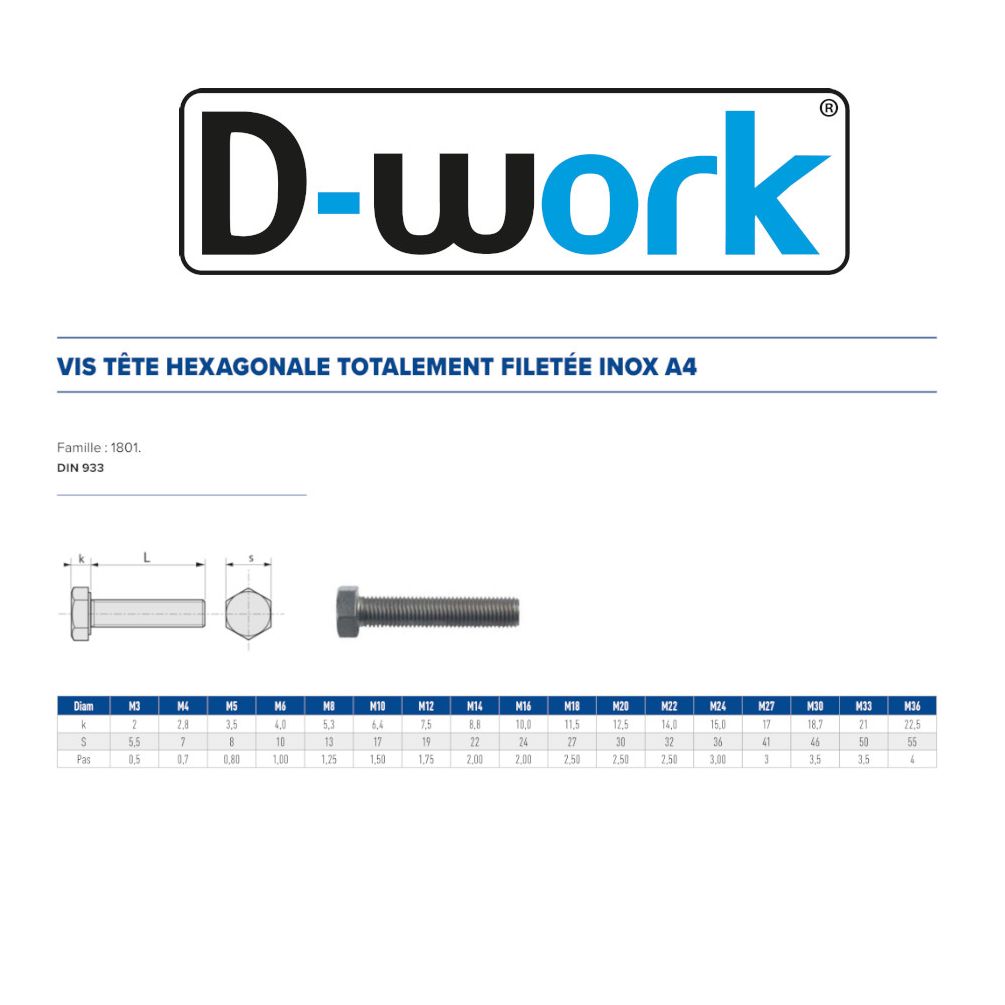 - Norme : DIN 933