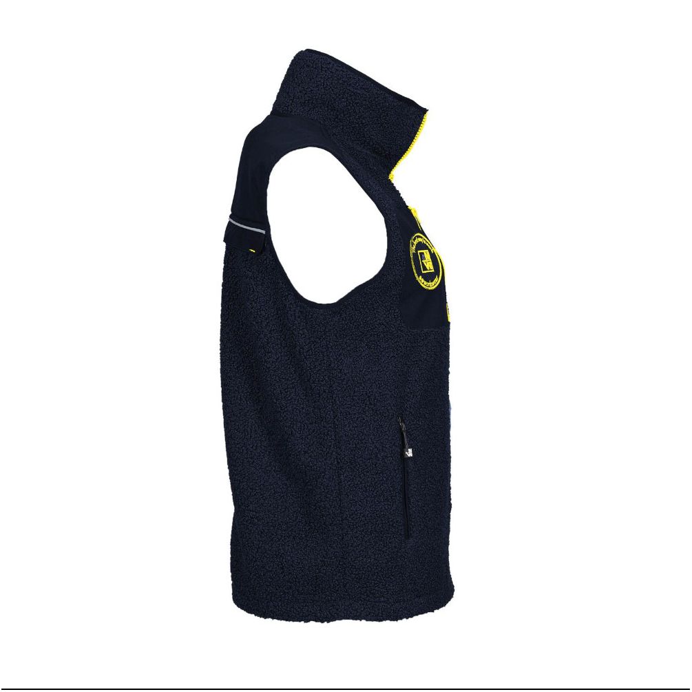 La polaire sans manches de travail Maya de la marque NINE WORTHS est conçue pour offrir confort et sécurité aux professionnels. Disponible en taille XL, elle combine un tissu chaud et léger avec des couleurs marine et jaune fluo pour une meilleure visibilité sur le lieu de travail.