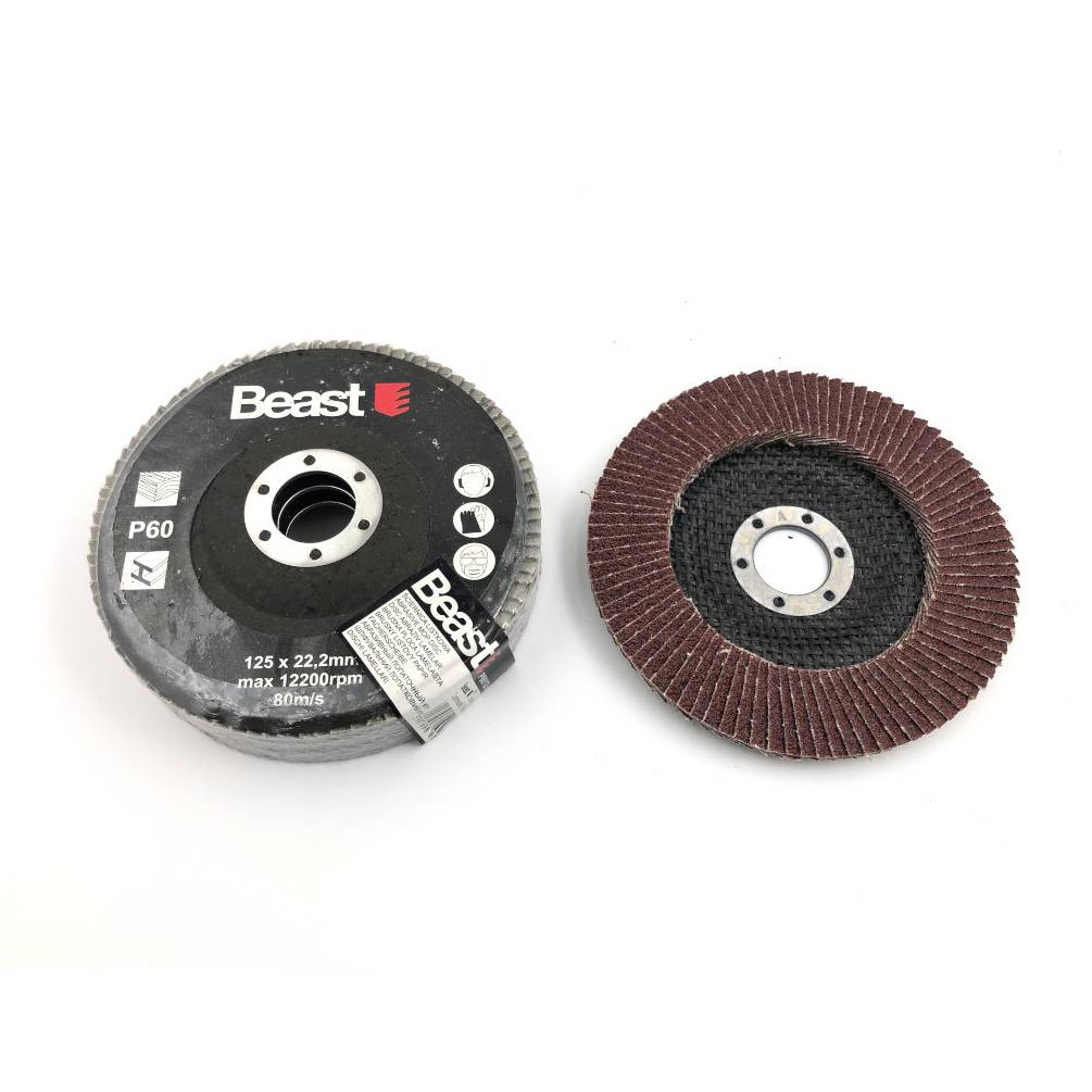 3 Disques Lamelles Plat D. 125 x Al. 22,23 mm - Gr 60 Corindon pour Bois - Métal - Usage Professionnel - Beast