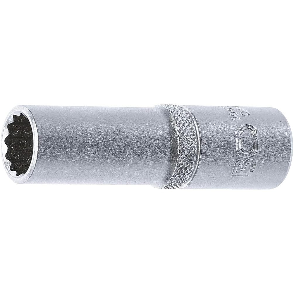 La douille longue 12 pans de 12,5 mm (1/2") avec une ouverture de 14 mm de la marque BGS est un outil de haute qualité conçu pour les travaux de mécanique et d'entretien. Sa conception longue permet d'atteindre des écrous et boulons situés dans des endroits difficiles d'accès, offrant ainsi une grande précision et une meilleure prise en main.Caractéristiques principales