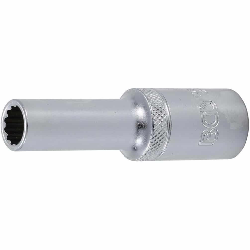 La douille longue 12 pans de 12,5 mm (1/2") avec une ouverture de 10 mm de la marque BGS est un outil de précision conçu pour les travaux mécaniques et d'entretien. Sa conception longue permet d'atteindre des écrous et boulons situés dans des endroits difficiles d'accès, offrant ainsi une grande polyvalence et efficacité.Caractéristiques principales