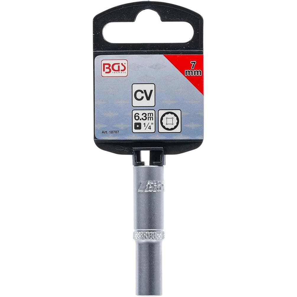 La douille longue 6,3 mm (1/4") à douze pans de la marque BGS est un outil de précision conçu pour les travaux de mécanique et bricolage nécessitant un accès facilité dans des espaces restreints. Sa conception longue permet d'atteindre des écrous et boulons difficiles d'accès tout en assurant une prise ferme grâce à sa forme douze pans.Caractéristiques principales