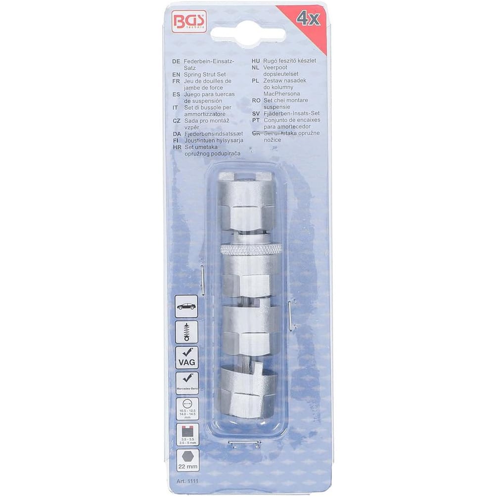 Ce jeu de douilles pour jambe de force BGS comprend 4 pièces en acier robuste, conçu pour faciliter la réparation et l'entretien des jambes de force de véhicules. Adapté aux professionnels et aux amateurs de mécanique, il permet un démontage et un remontage efficaces des composants de suspension.Caractéristiques principales