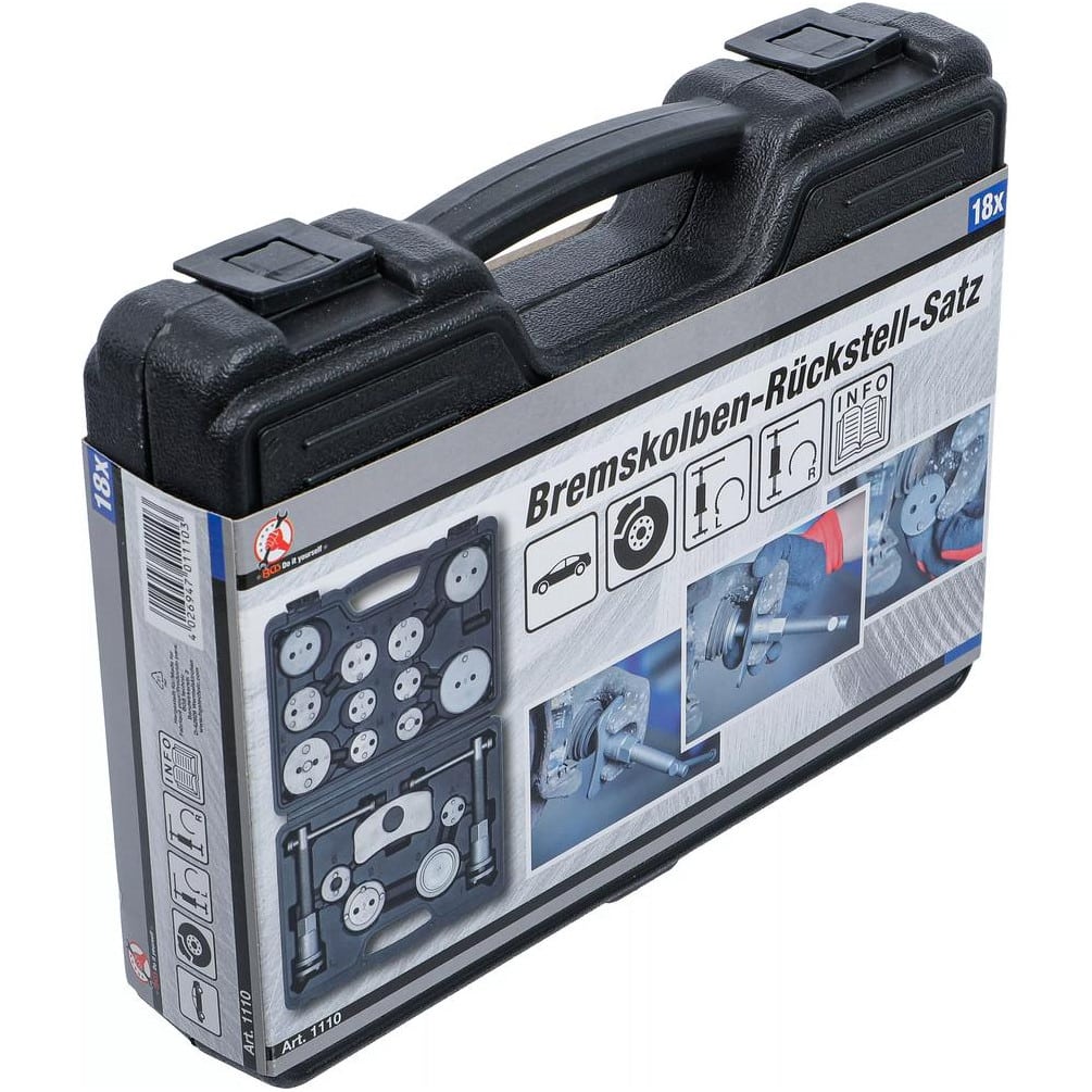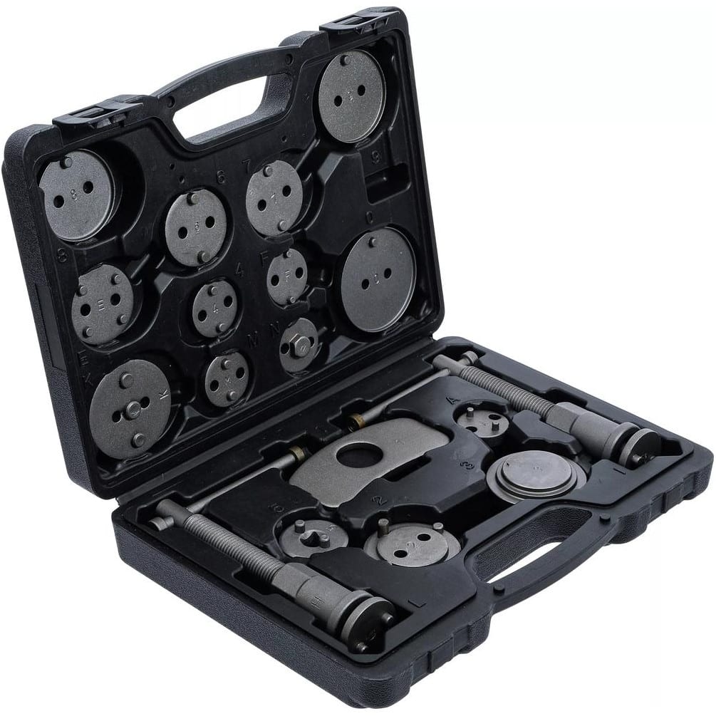 Le jeu de repousse-pistons de frein BGS comprend 18 pièces robustes et précises, conçues pour faciliter le remplacement et l'entretien des plaquettes de frein. Cet ensemble est idéal pour les professionnels et les amateurs de mécanique automobile souhaitant un outil fiable et polyvalent.Caractéristiques principales