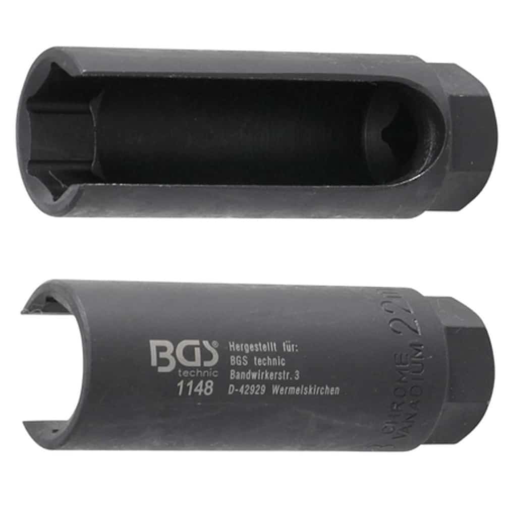 La Douille pour Sonde Lambda 12,5 mm (1/2") - 22 mm de la marque BGS est un outil indispensable pour le montage et le démontage précis des sondes lambda sur les véhicules. Conçue pour offrir une prise sûre et un travail efficace, cette douille facilite l'entretien et la réparation des systèmes d'échappement.Caractéristiques principales
