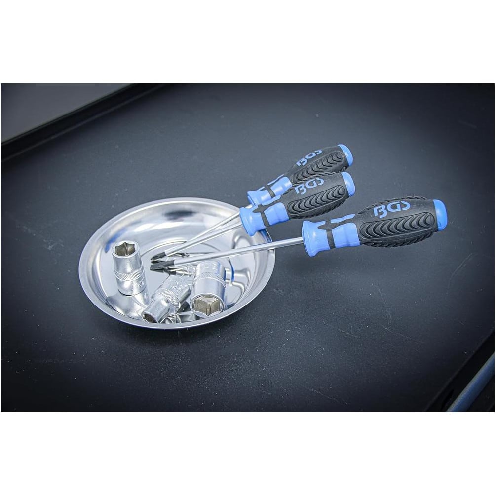 Le Bol Magnétique BGS en acier inoxydable d'un diamètre de 150 mm est un accessoire indispensable pour organiser et sécuriser vos petites pièces métalliques lors de vos travaux. Sa conception robuste en acier inox garantit une excellente résistance à la corrosion et une durabilité optimale. Ce bol magnétique facilite la collecte et le maintien des vis, écrous, clous et autres éléments métalliques, évitant ainsi leur perte et améliorant votre efficacité.