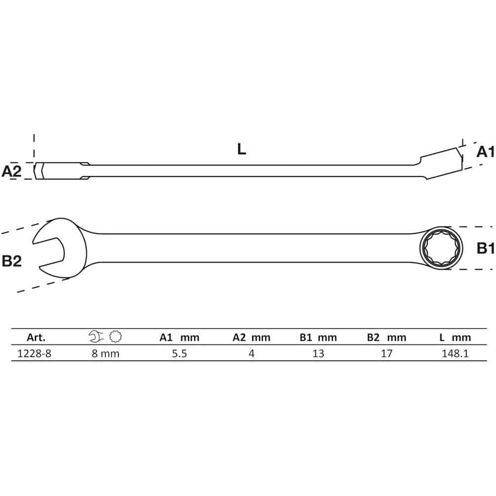 Ref. BGS-1228-8En savoir + sur Clé Mixte Extra Longue 8 mm - Acier Résistant - Précision et Durabilité, Zones Difficiles - D-Work